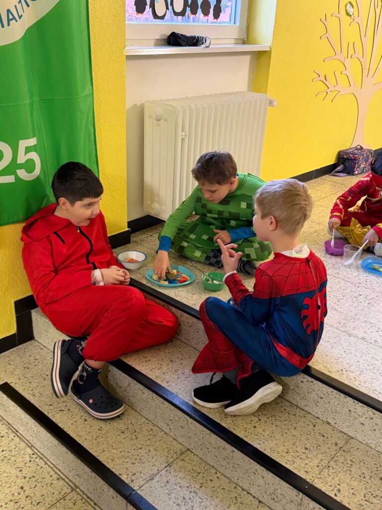 Welch ein herrlicher Tag voller Lachen, Bewegung und kulinarischer Highlights! Unsere diesjährige Faschingsfeier war wieder ein voller Erfolg und wird uns allen noch lange in bester Erinnerung bleiben. Schon am Morgen zog ein verführerischer Duft durch das Schulhaus: Unser engagierter Elternbeirat hatte ein fantastisches Pausenfrühstück vorbereitet. Mit viel Liebe zum Detail wurden die Tische geschmückt und mit köstlichen Leckereien gefüllt.