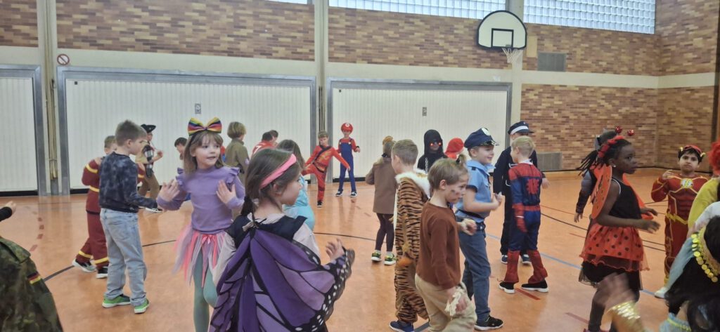 In der Turnhalle warteten lustige Faschingsspiele, beim Luftballontanz und lustigen Staffelspielen wurde gehüpft, gelacht und angefeuert. Piraten rannten neben Prinzessinnen, Superhelden traten gegen Tiere an, aber alle hatten ein gemeinsames Ziel, Spaß haben! Unsere Faschingsfeier hat wieder einmal gezeigt, wie schön Gemeinschaft sein kann. Gemeinsam lachen, spielen und genießen – das macht unsere Schulgemeinschaft aus.
