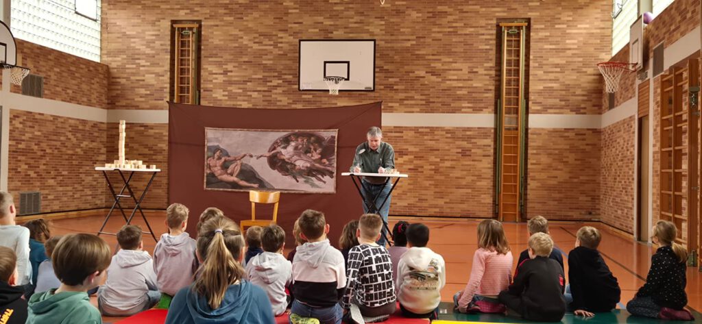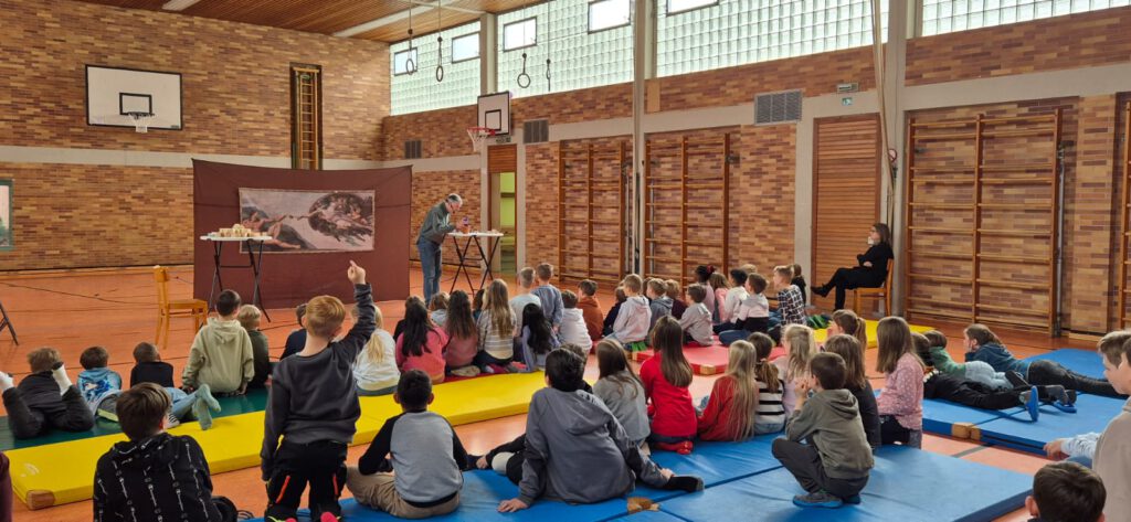 Im Mittelpunkt der Aufführung stand eine scheinbar alltägliche Situation: Eine Plastiktüte lag auf einer Wiese. Doch anstatt sie einfach aufzuheben und zu entsorgen, fühlte sich niemand dafür verantwortlich. Die Figuren im Stück gaben die Aufgabe immer weiter – jeder meinte, ein anderer sei zuständig. Auf diese Weise wurde den Kindern eindrücklich gezeigt, wie leicht Verantwortung im Alltag abgeschoben wird und wie dadurch Umweltprobleme bestehen bleiben. Das Theaterstück regte die Schülerinnen und Schüler zum Nachdenken an. Gemeinsam wurde deutlich, dass Umweltschutz nicht nur eine große, abstrakte Aufgabe ist, sondern bereits bei kleinen Handlungen beginnt. Jeder Einzelne kann einen Beitrag leisten, indem er Verantwortung übernimmt und nicht darauf wartet, dass andere handeln.