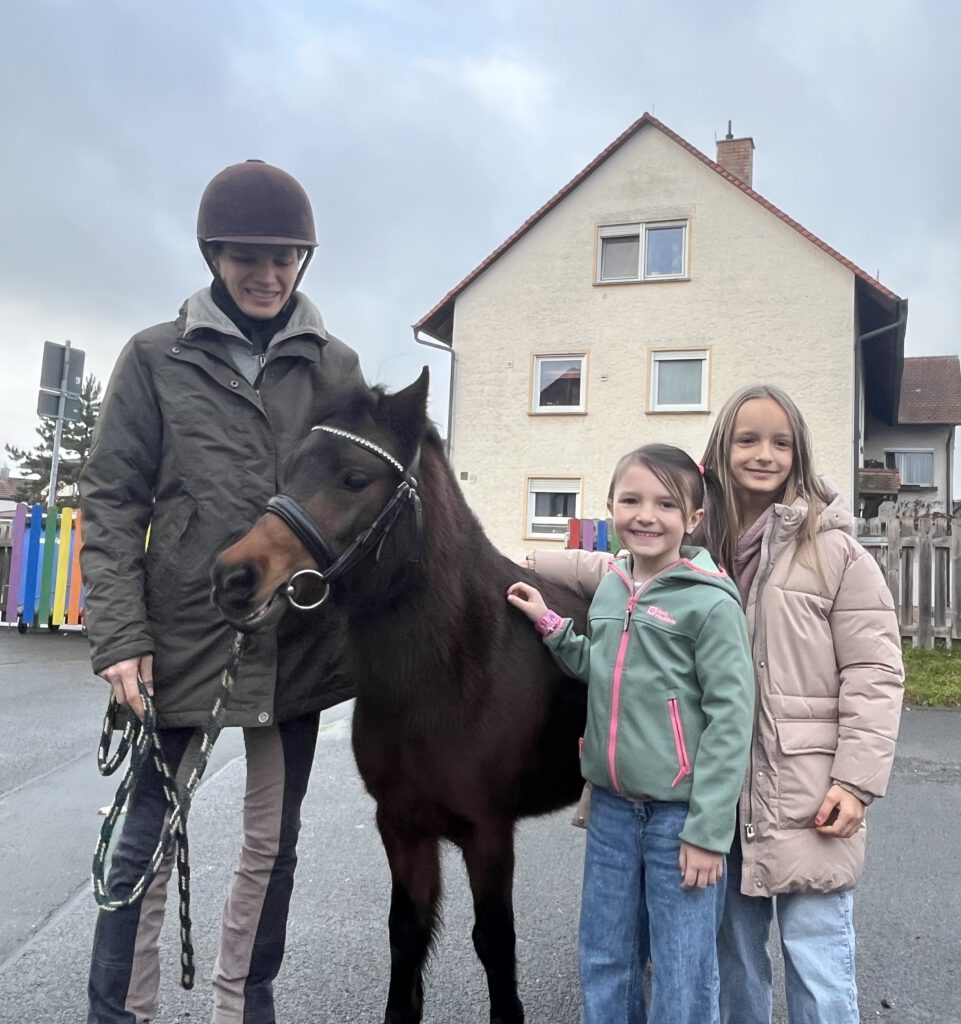 Ein herzliches Dankeschön an die Reiterin Viktoria Herschberger, die diesen besonderen Besuch möglich gemacht hat, an Pferd Kroketti und das Pony Dornröschen sowie natürlich an unseren Elternbeirat, der die Aktion tatkräftig unterstützte.