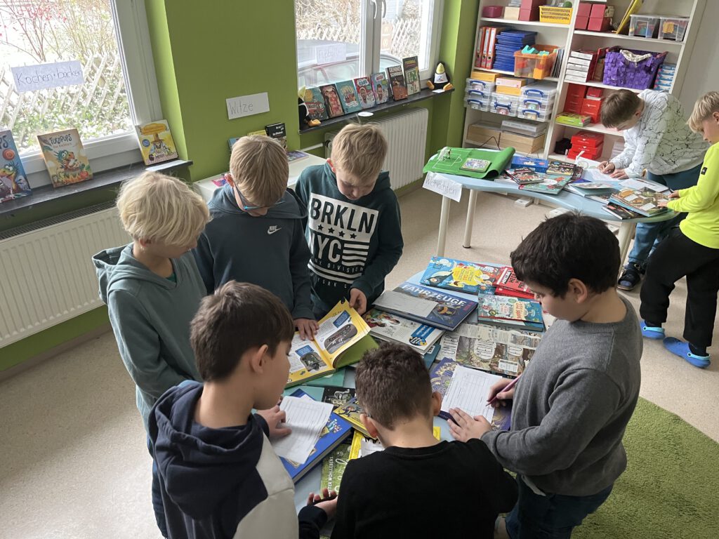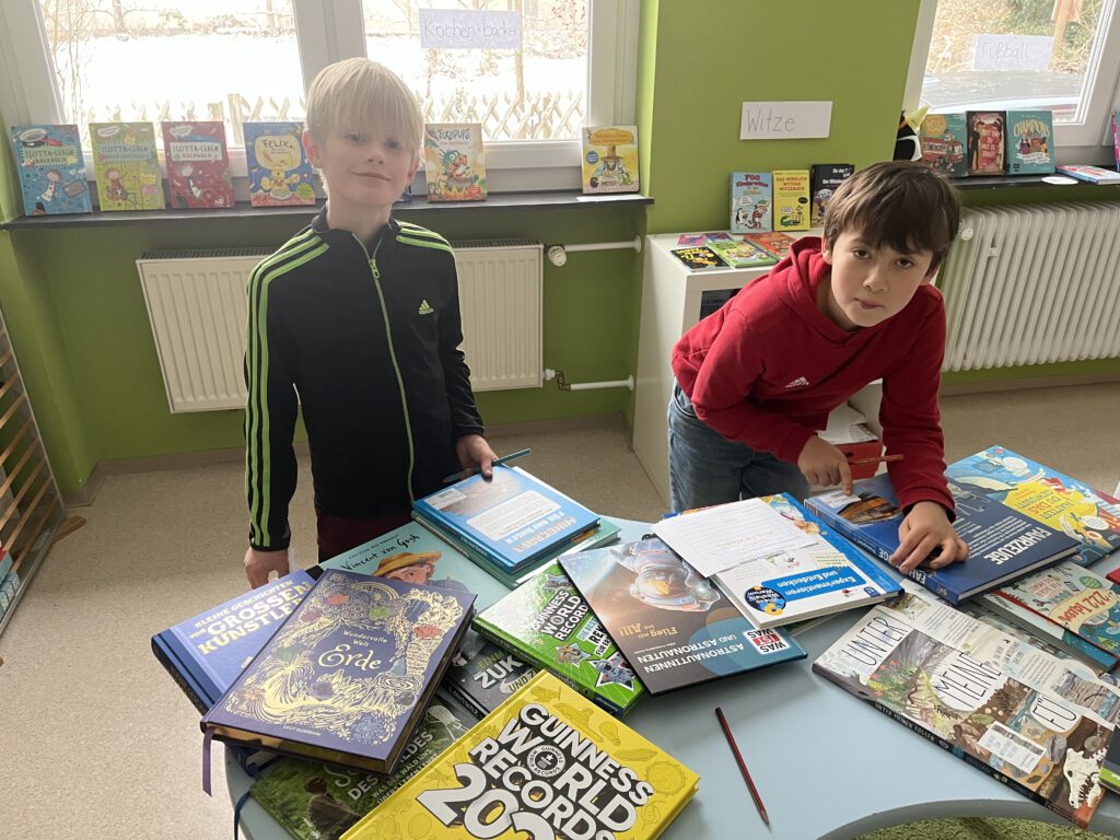 Auch in diesem Jahr durften sich unsere Schülerinnen und Schüler über eine besondere Aktion freuen. Die Bücherei Hofmann stellte eine große Auswahl aktueller Kinder- und Jugendbücher direkt in unserer Schule zur Ansicht bereit. In einer kleinen Ausstellung konnten die Kinder in Ruhe stöbern, spannende Geschichten entdecken und neue Lieblingsbücher finden.
