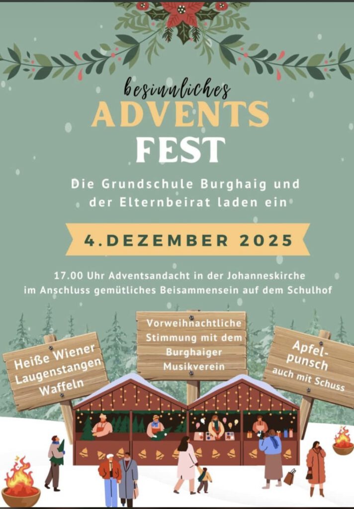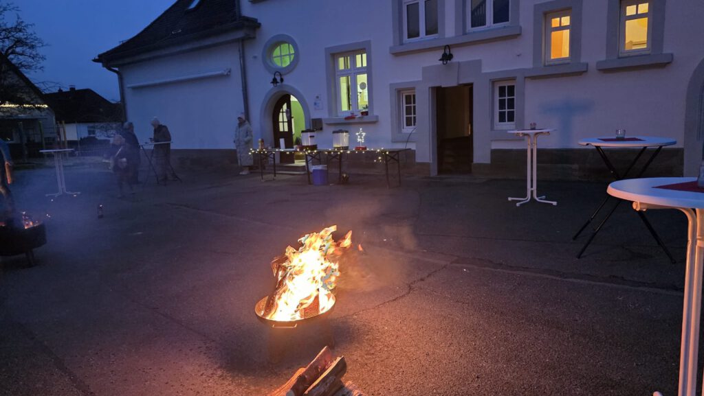 Im Anschluss lud der Elternbeirat zu einer gemütlichen Adventsfeier auf dem Schulhof ein. Bei Feuerschalen, warmen Getränken, Wienern und Laugenstangen kamen Kinder, Eltern und Lehrkräfte in winterlicher Atmosphäre zusammen.