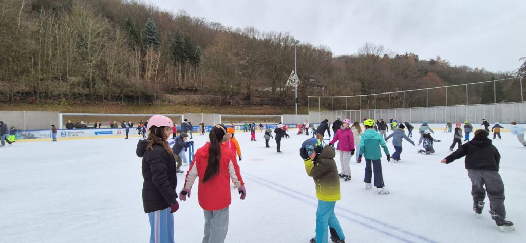 Organisiert wurde der Ausflug vom engagierten Elternbeirat, dem an dieser Stelle ein herzliches Dankeschön gilt. Auf dem Eis hatten die Kinder sichtlich viel Spaß, egal ob erste vorsichtige Schritte oder schon sichere Runden, die Begeisterung war überall zu spüren. Zur Stärkung gab es anschließend leckeren Kinderpunsch, der für warme Hände und gute Stimmung sorgte.